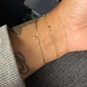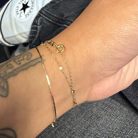 Size 6”, 14k gold bangle by catbird, this style has been discontinued. Gently worn still has oval shape, stamped on clasp. The star charm is not included. Bangle only.