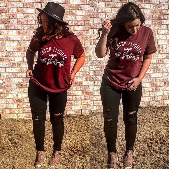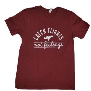 Catch Flights Not Feelings Burgundy Short Sleeve T-Shirt Women's Medium 912