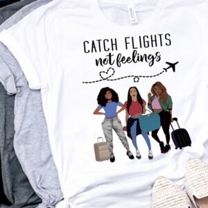 Catch Flights Not Feelings Squad tee is coming to a traveler near you soon so get onboard with one before we pull off and you miss the flight! Available in various sizes, white, short or long sleeve (additional $7). Made when ordered. Please allow 1-2 weeks for production. Get yours today!!