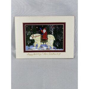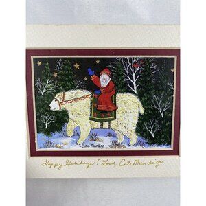 Cate Mandigo Print Father Christmas Polar Bear Signed Matted 5” x 7” Santa