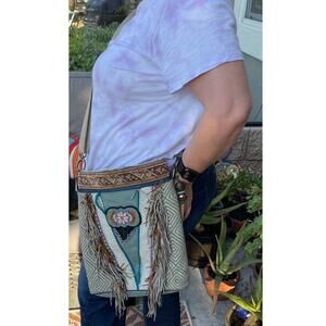 Catena handmade BOHO crossbody bag purse beadwork leather fringe