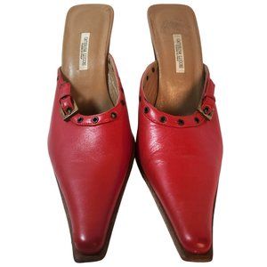 Caterina Lucchi Women's Red Leather Mules Buckle Detail Snip Toe Size 40 EU/9 US