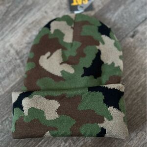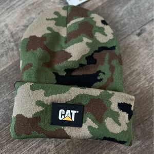 This listing is for a NWT's Caterpillar CAT Label Cuff Beanie in Camo. Reliable and built to do its job without fail, this extended cuff beanie earns its CAT badging.