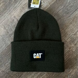 This listing is for a NWT's Caterpillar CAT Label Cuff Beanie in dark green. Reliable and built to do its job without fail, this extended cuff beanie earns its CAT badging.