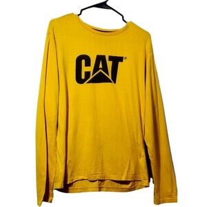 Classic Caterpillar CAT tractor long sleeve t-shirt in Medium, vintage style, featuring the iconic workwear logo across the chest. Durable cotton blend, crew neck, and ribbed cuffs make it ideal for job sites, DIY projects, or laid-back casual wear for tractor enthusiasts or lovers of heritage workwear brands. This piece brings genuine utility, nostalgia, and rugged style to any collectionperfect for work, streetwear, or weekend chores. True vintage look with expected soft fade and logo wear per details/photos; measurements and tag info included for fit confirmation.