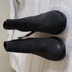 Caterpillar CAT dark gray heeled ankle booties almond toe zipper women size 7.