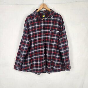 Caterpillar Flannel Button Up Womens 2XL Workwear Plaid Red Gray