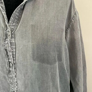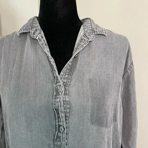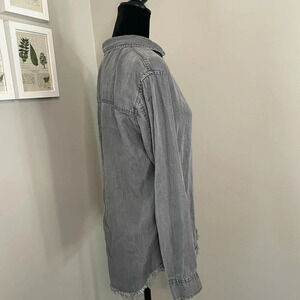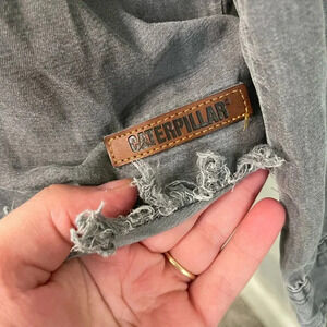 Caterpillar Gray Chambray Button Down Shirt with Raw Hem