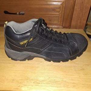 Durable and comfortable men's black Caterpillar Safety Toe work shoes, perfect for any job. Designed for reliability and style.
