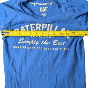Caterpillar fitted tee in size S. Cute blue workwear top with graphic print.