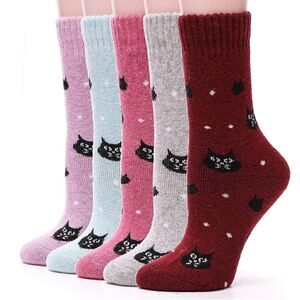 Perfect for the winter weather! 5-pairs of socks that are a blend of 55% Wool, 25% Cotton, 15% Polyester, 5% Spandex.