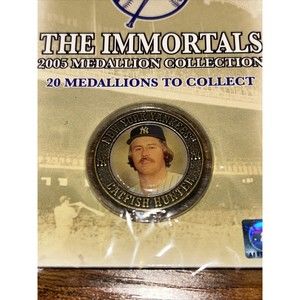 This vintage Catfish Hunter baseball medallion is a must-have for any die-hard New York Yankees fan. The immortal pitcher is immortalized in this 2005 tribute to his induction into the Baseball Hall of Fame. The medallion features stunning fineness and intricate details that capture the essence of Catfish Hunter's legacy.