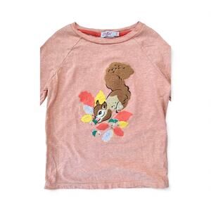 Cath Kids London Girls 7-8 Fall Embroidered Squirrel Long Sleeve Top
