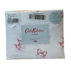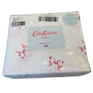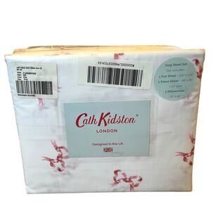 Add a touch of chic charm to your bedroom with this Cath Kidston 200TC Ribbon Bow King Sheet Set in pink and white. Brand new and beautifully designed, this soft 200-thread-count cotton set includes a flat sheet, fitted sheet, and two king pillowcases—all featuring a stylish bow print that elevates any home décor. Machine-washable, high-quality, and perfect for creating a fresh, feminine, and cozy look.