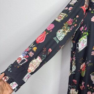 Cath Kidston Dress Women 18 Black Cups Vases Floral Ruffle Whimsical Cottagecore