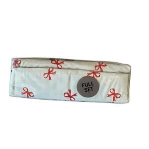 Cath Kidston London Holiday Red Bows Cotton FULL Sheet Set 4pc Sage Green