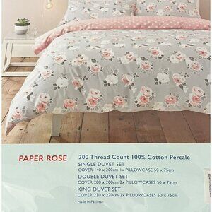 Cath Kidston Paper Rose Single Duvet Set Cover And Pillowcase 200 Count Floral