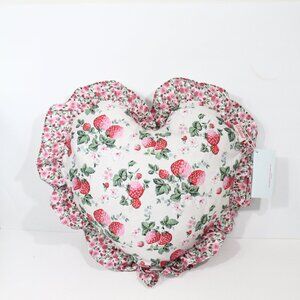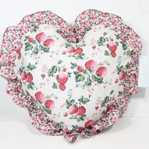Cath Kidston Strawberry Ruffle Heart Shaped Pillow NEW Pink Shabby Chic cottage