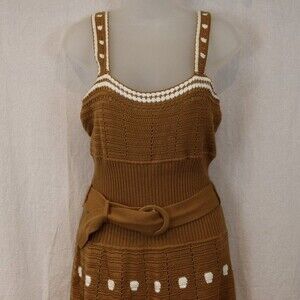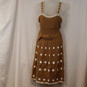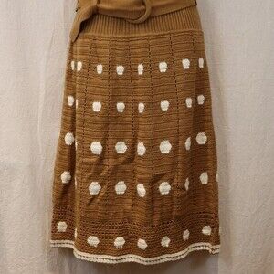 Catharine Malandrino Brown Knit Belted Polka Dot Midi Dress NWT 12