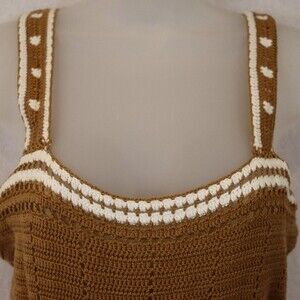 this dress is absolutely stunning. brown knit with white trim and polka dots.