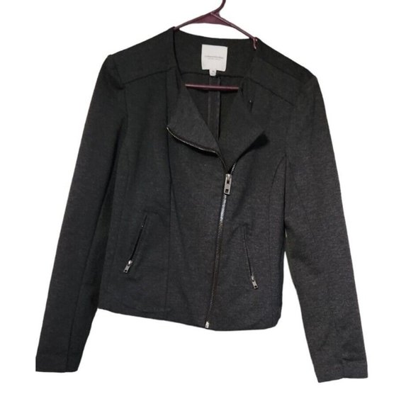 Catharine Malandrino Runway Style Ladies' Charcoal Gray Jacket Sz M. Slash zippered outside pockets. Off Center Zipper. Beautiful jacket. Like new