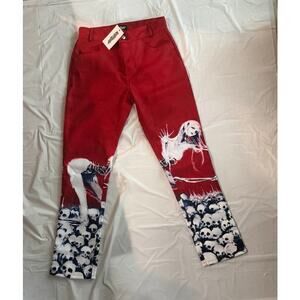 Catharsis Red Graphic Pants**Size 34** Ghost/Skull Print *NWT*