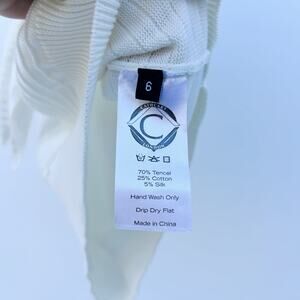 Cathcart London Sailor Top Blouse Ribbed Bow Tie Neck 6 White Cotton Silk
