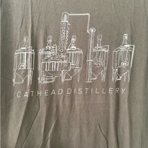 Cathead Distillery Tee T-Shirt Medium Gildan Gray White Liquor Brand Bar Swag
