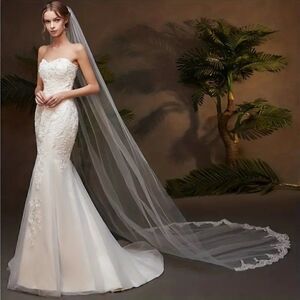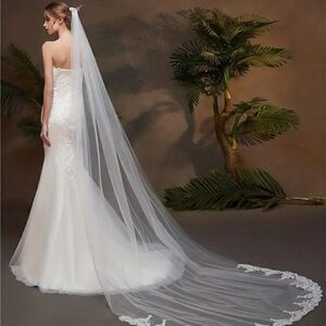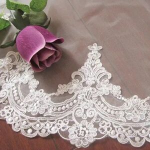 Cathedral Bridal Wedding Veil With Embroidered Floral Lace Edge and Comb