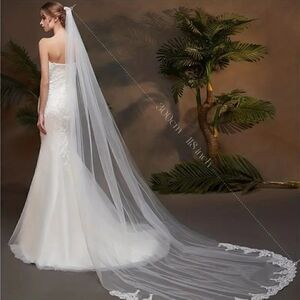 This beautiful Cathedral veil measures over 9 feet long at 118" or 9.83'.