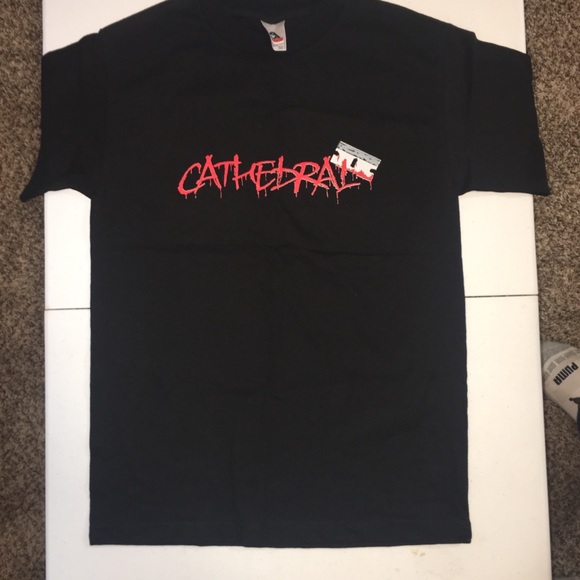 Cathedral written in blood with a razor blade at the end
