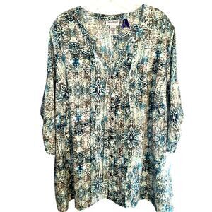 Catherine 2XP Blue Women's Top Shirt Blouse Petite P2XL 22WP 24WP 2X 22W 24W