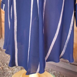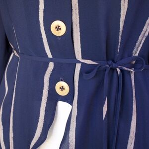 Catherine Bacon 100% Silk Blue & White Stripe Double Collar High Low Blouse XS