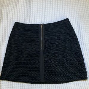 Catherine dean black mini skirt. The skirt is very well-made, very heavy with a braided cotton material. Fully lined. Back zipper detail. Waist 13 1/2 inches, hip 17 1/2 inch