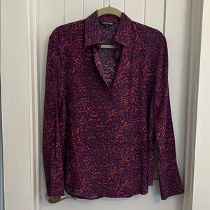 Catherine Gee 100% Silk Purple Red Abstract Print Button-Up Popover Shirt Small