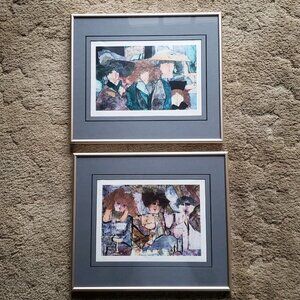 Pair of limited edition prints by Catherine Heno Suffel, featuring figures in an expressionist style.