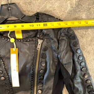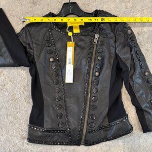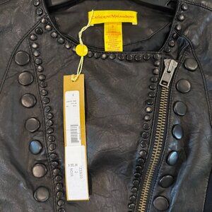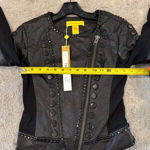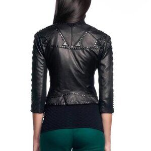 Catherine Malandrino 123JL03 Jacket Noir Cropped Lambskin Leather Black Stud NEW