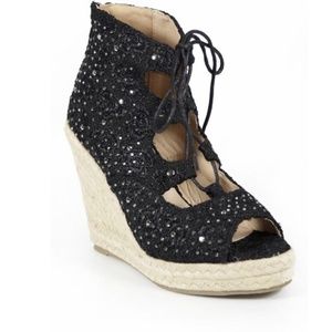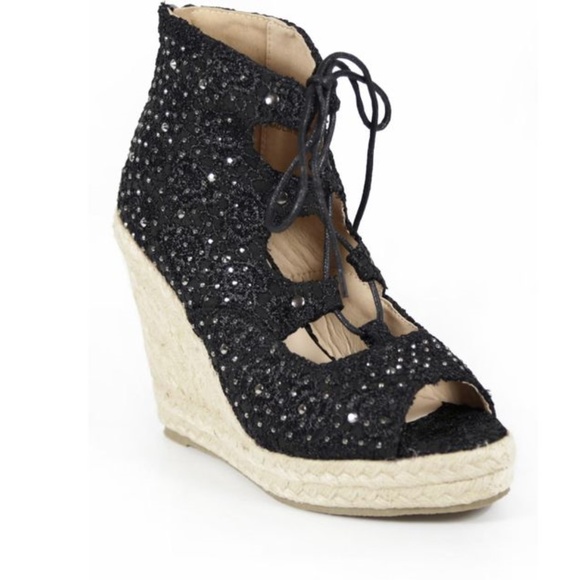 Silver tone hardware, jewel embellishment, center zip up closure, lightly padded insole.
