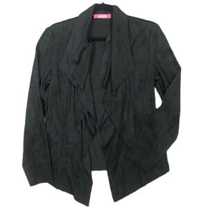 Catherine Malandrino Black Faux Suede Open Cascade Waterfall Jacket Petite Small
