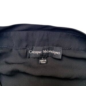 Keywords: Catherine Malandrino blouse, lace top, sheer black blouse, romantic lace shirt, dressy black top, evening blouse, V-neck lace top, holiday outfit, chic black blouse, elegant sheer top, feminine long sleeve blouse, classy date night blouse, versatile dressy top, black lacework shirt, polished evening wear, boho chic lace blouse, work-to-dinner top, modern romantic top, soft lace sleeve blouse, designer black blouse
