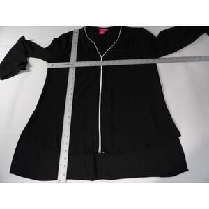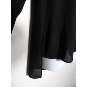 Catherine Malandrino Blouse Medium Black Hi Lo White Trim Career Office Flowy