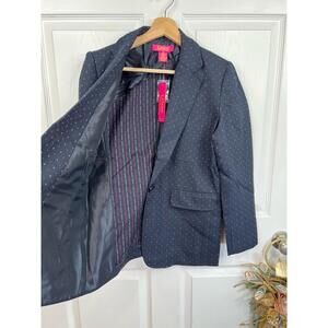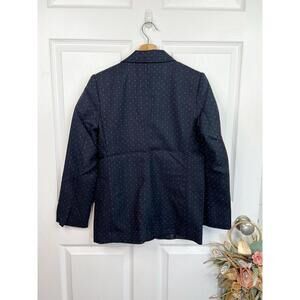 Catherines Blazer Womens Petite Navy Blue Polka Dot Single Button Classic Professional