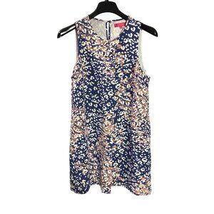 Catherine Malandrino Sleeveless Blue Orange White Abstract Leopard Print Dress Size 12 Shift