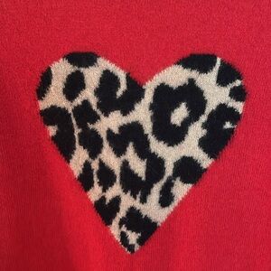 Gorgeous Red Cashmere Sweater with Leopard Heart!