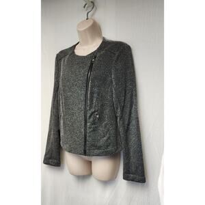 Catherine Malandrino - Charcoal Zip-Up Knit Long Sleeve Moto Jacket Sz Medium.