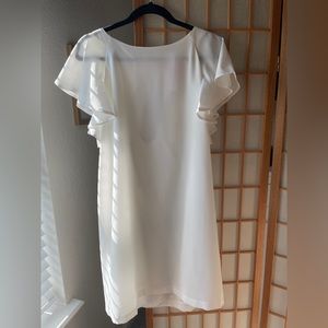 Catherine Malandrino Coastal Capri Bright White Dress in Medium features a mini sheath silhouette, is lined, sleeveless with ruffled shoulders and a key hole cut out with a button loop closure at the back. 100% Polyester. Made in Vietnam. Machine Wash Cold with Like Colors Gentle Cycle. Only Non-Clorine Bleach. When Needed Tumble Dry Low. Cool Iron When Needed or Dry Clean. Condition is Brand New with Tags.