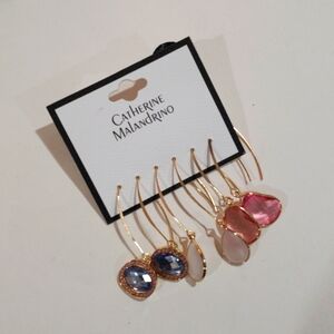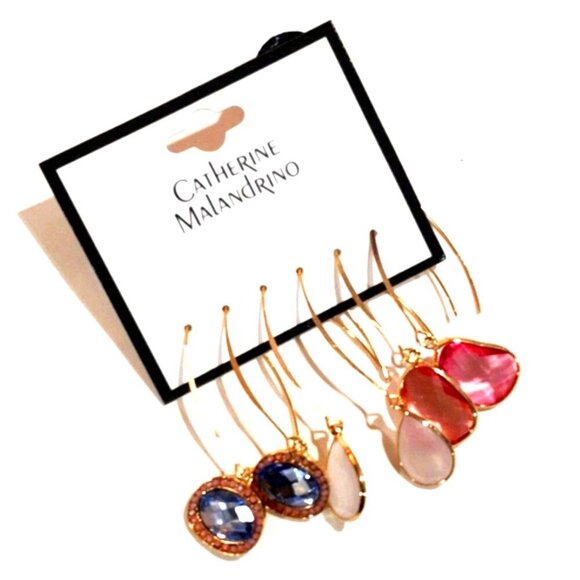 Upgrade your jewelry collection with this Catherine Malandrino Dangle Earring Set, featuring three uniquely shaped, colorful earrings. These lightweight and stylish accessories are designed with gold-tone hooks, which add an elegant touch to any outfit.