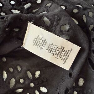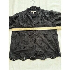 Catherine Malandrino Cotton Black Ruffle Collar V Neck Eyelet Woven Top Size M