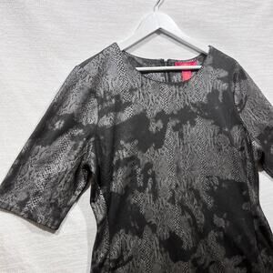 Catherine Malandrino Dress Sz XL Black Python Snake Print Metallic Sheath Zipper