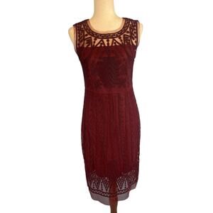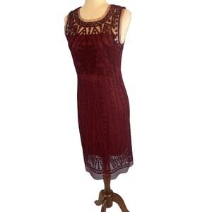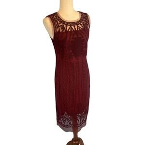 Catherine Malandrino Favorites Embroidered Mesh Lace Sheath Dress Burgundy Sz 2-Excellent pre-loved Condition